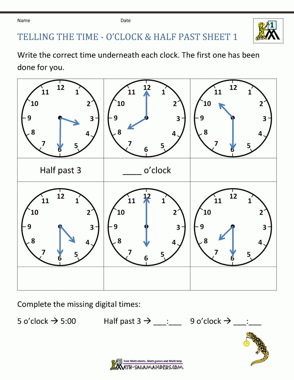Telling Time Clock Worksheets