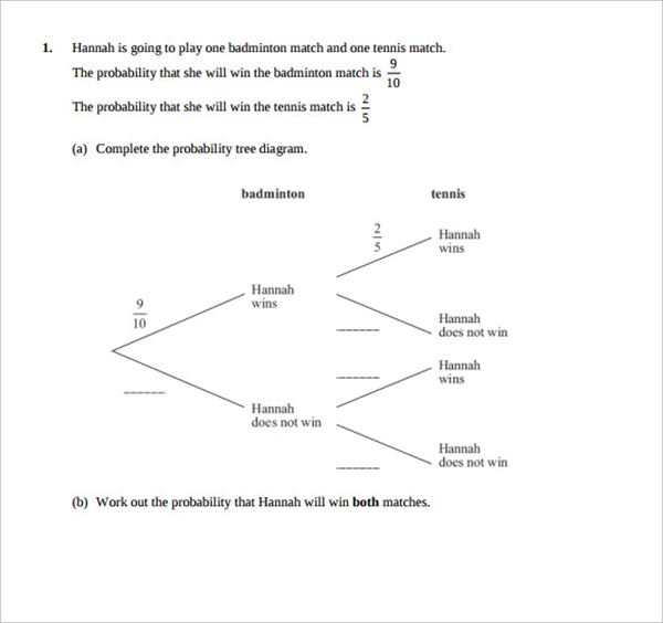 Sample Tree Diagram Worksheet