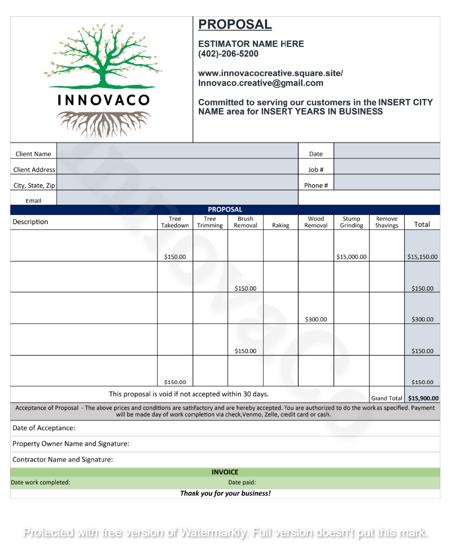 Tree Quote Template