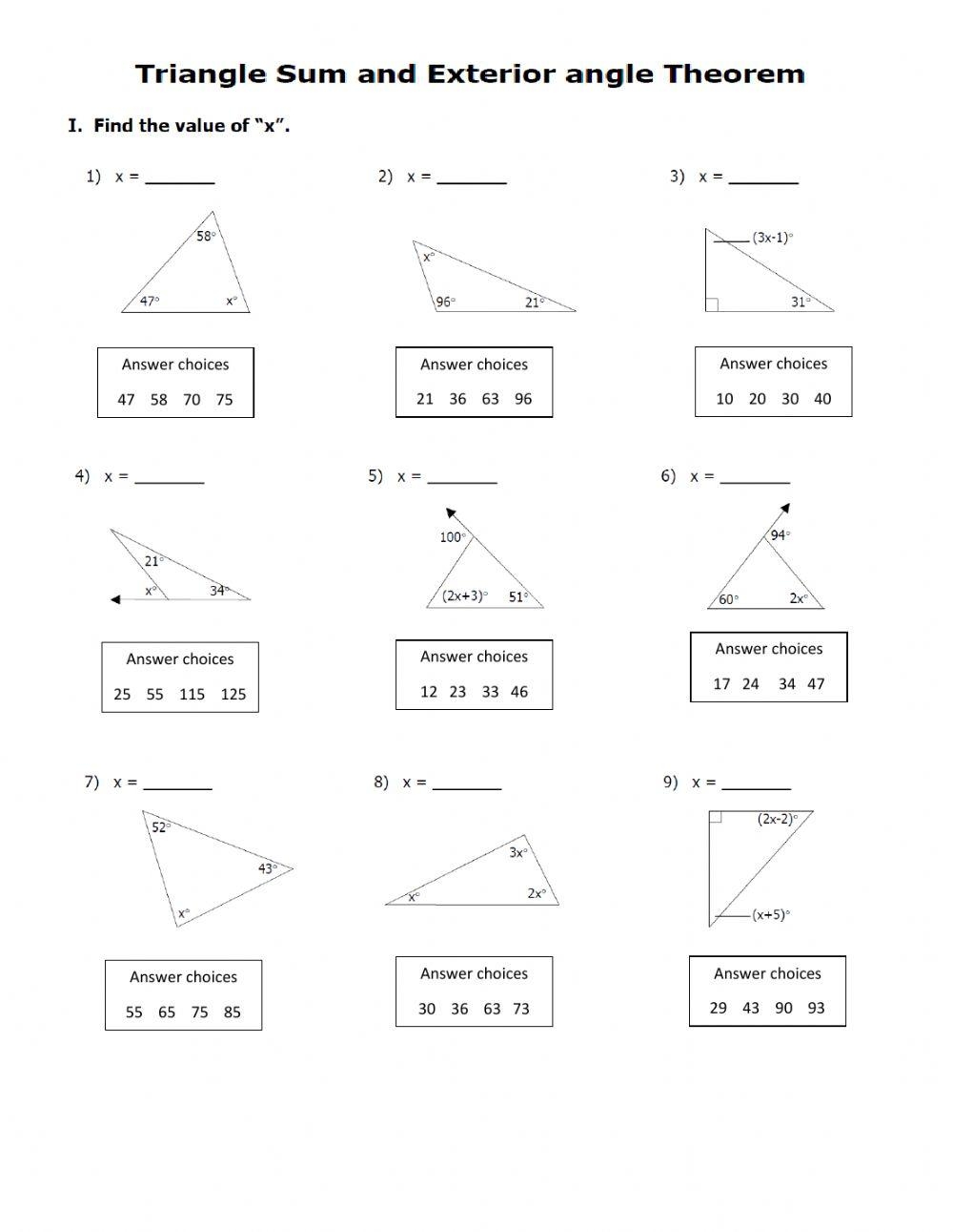 Worksheet activities provide students with a hands-on and interactive way to engage with the Triangle Sum Theorem. By working through problems independently or in groups, students can practice applying the theorem in different scenarios and develop their problem-solving skills. Worksheets also allow teachers to assess students’ understanding of the theorem and provide targeted feedback to support their learning.