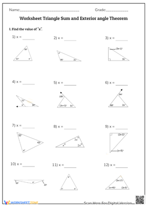 One way to practice and reinforce understanding of the Triangle Sum Theorem is through worksheets. These worksheets typically include a series of problems and exercises that require students to apply the theorem to find missing angles in triangles, solve for unknown variables, and demonstrate their understanding of geometric principles.